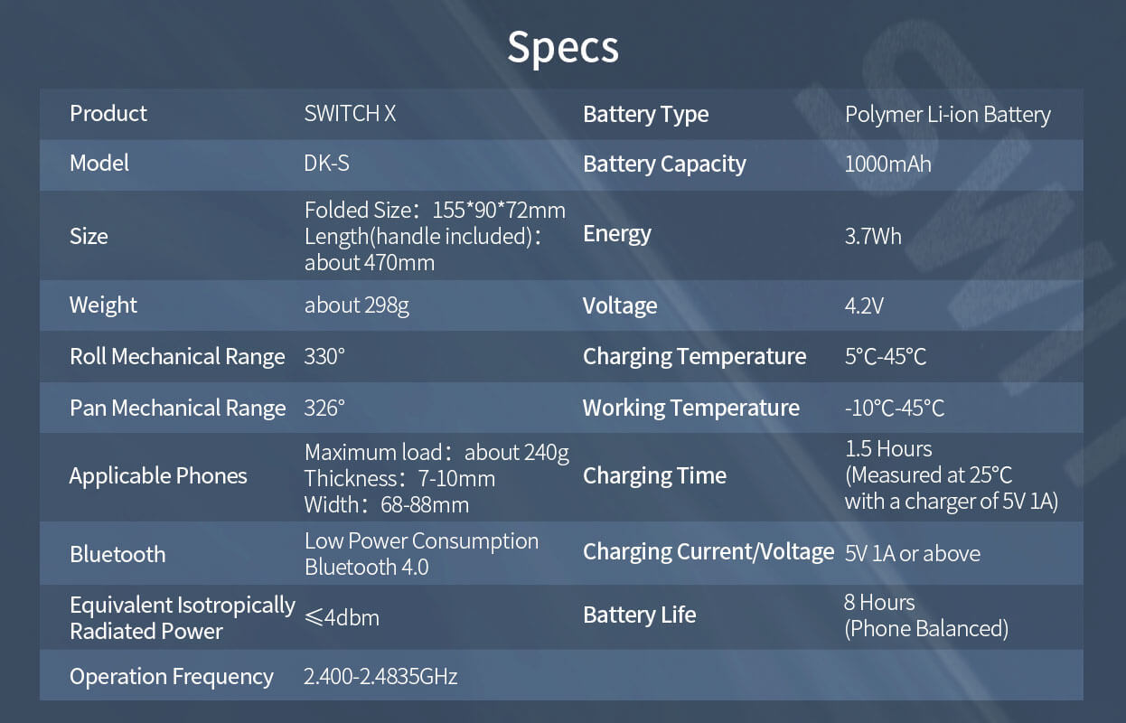 Functions of the gimbal, selfie stick, tripod, etc. are all rolled into one, making Switch X perfect for live streaming and vlog shooting.
