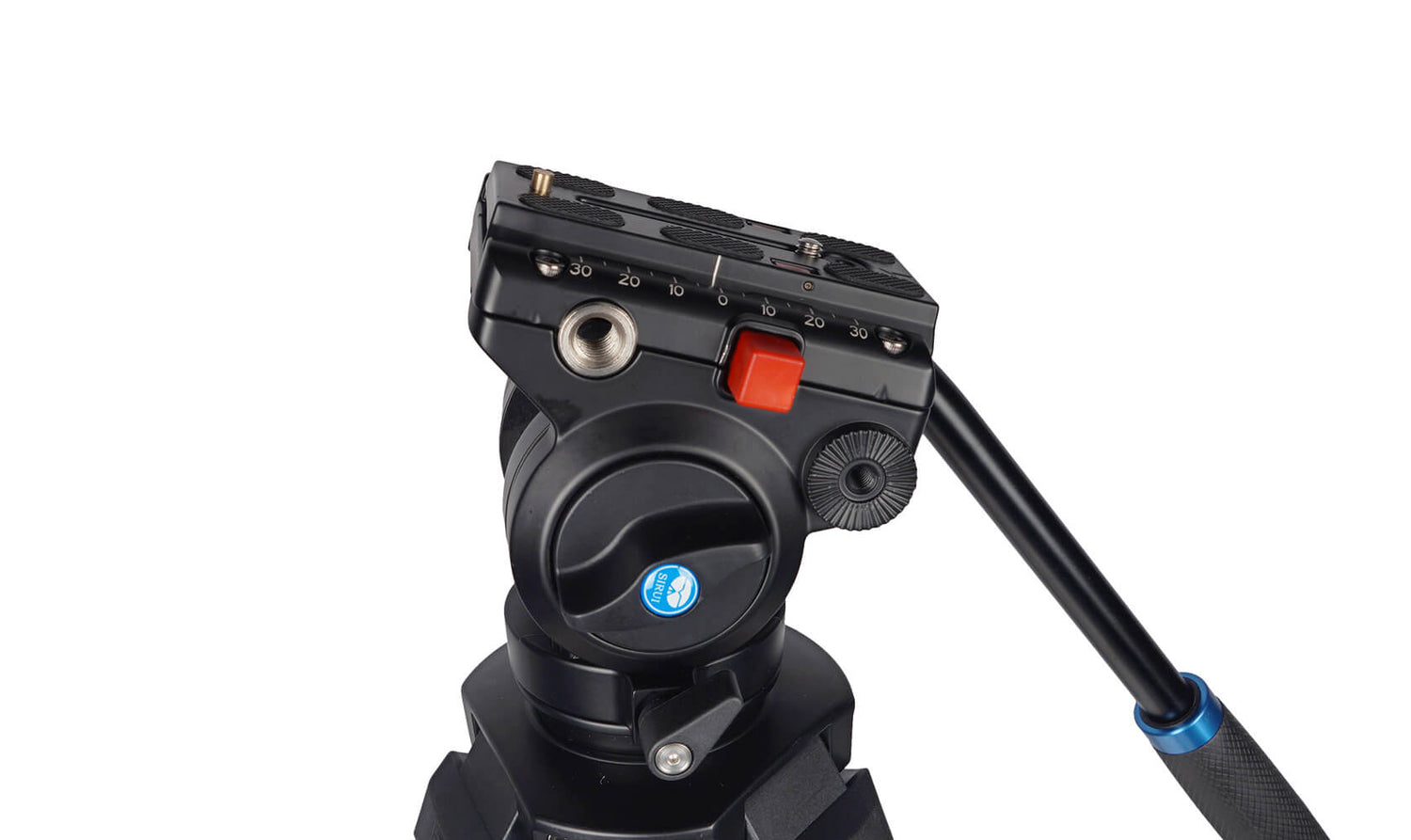 The video head comes with separate pan and tilt locking systems. The panorama base allows for 360° pan of the head while the tilting range is -75° to +90°.