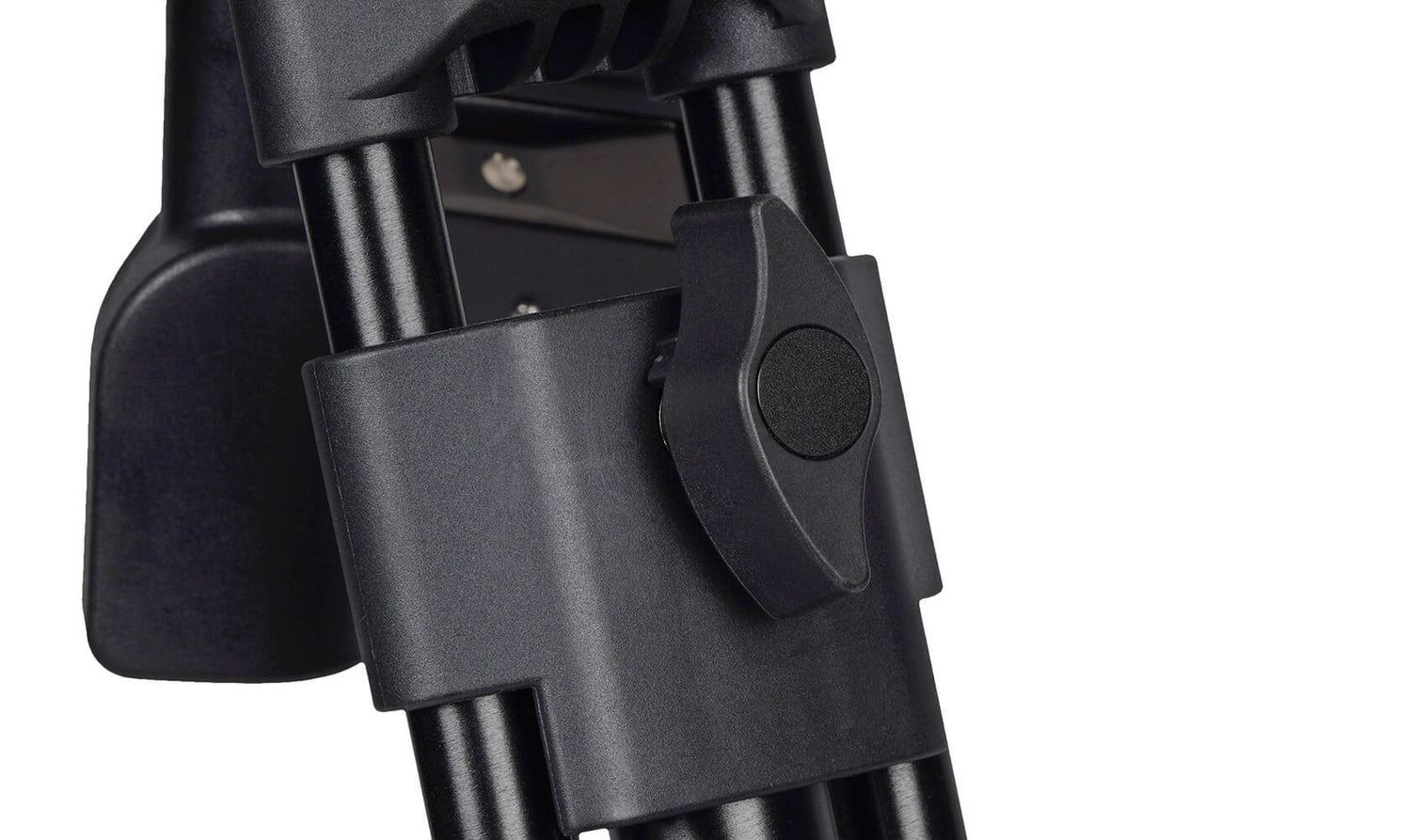 The center spreader can be individually adjusted in width to give the tripod necessary stability. Lift the spreader up to quickly collapse the tripod. The leg locking buckles are attached to prevent the leg tubes from easily opening up.