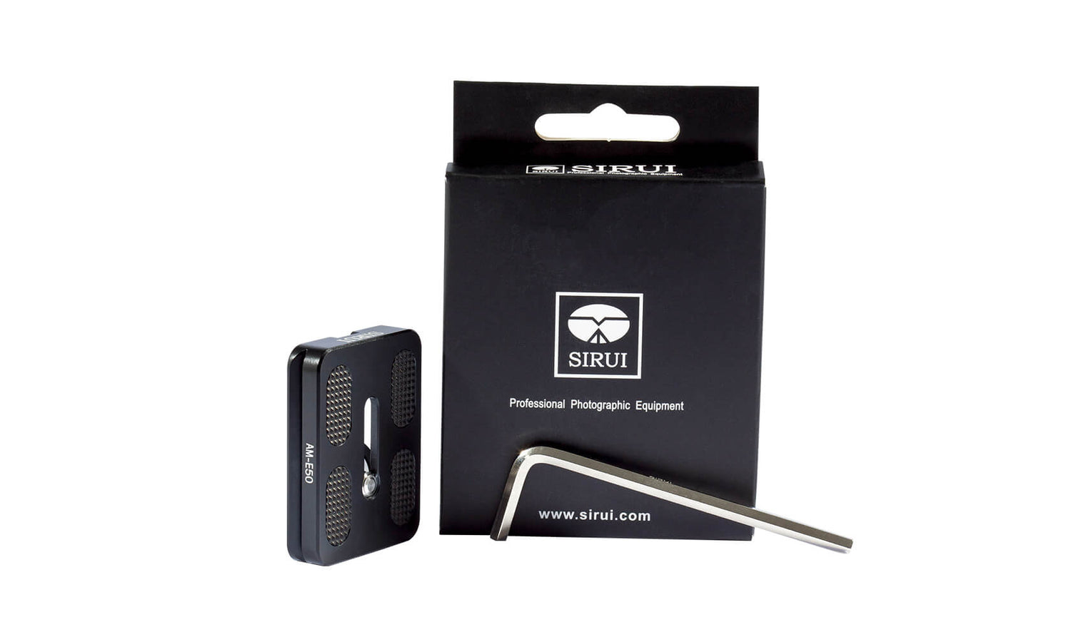 - Box contents: SIRUI AM-E50 removable plate, Allen key