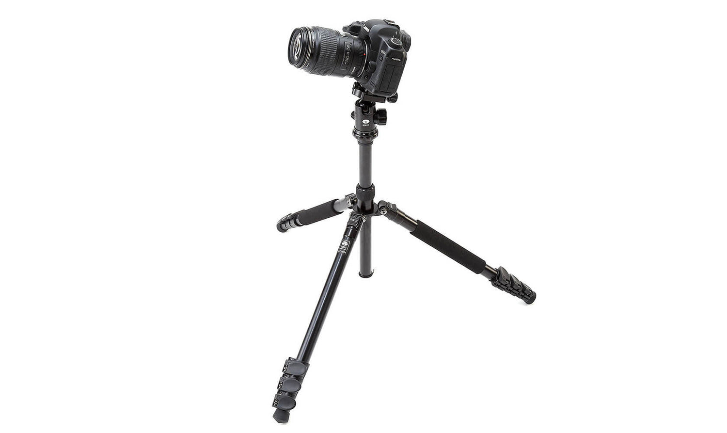 - 4-section aluminum tripod with included ball head and quick release plate.