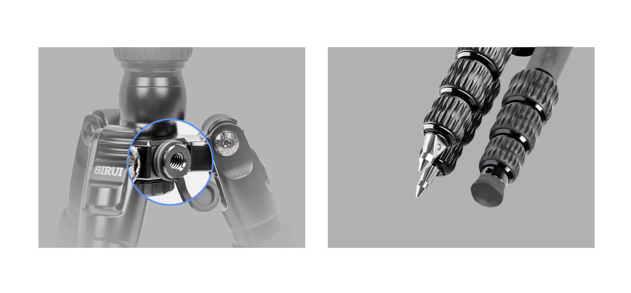 Connect a video accessory via the included 1/4" -20 accessory port. And with the included stainless metal spikes, stand firm on soft ground to shoot steadily.