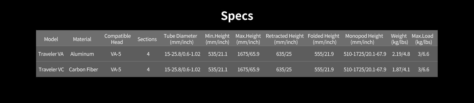 SIRUI Carbon Fiber/ Aluminum Traveler Tripod with VA-5 Traveler VA VC - Traveler VA (Aluminum) is backordered and will ship as soon as it is back in stock.