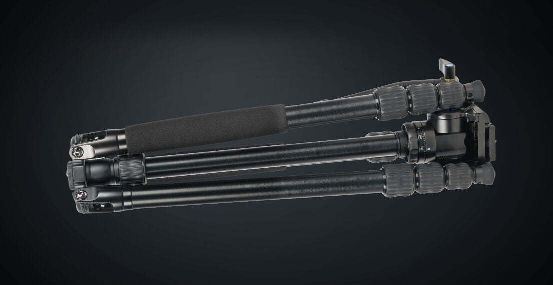 The tripod includes the semi-automatic leg angle adjustment buttons and twists leg locks to adjust the spread and length of the legs for different leg height needs