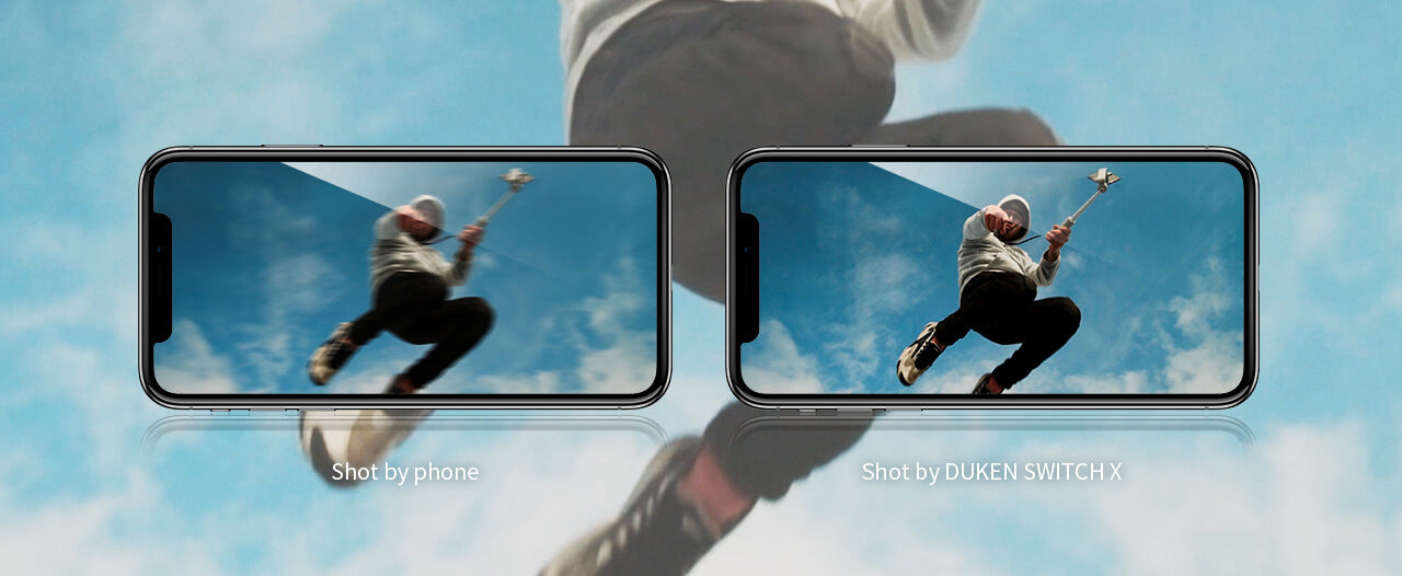 Smartphones generally shoot in 16:9 aspect ratio. With a smartphone Anamorphic lens attached, DUKEN APP can enable the phone to directly produce a cinematic video in 2.4:1 aspect ratio with a 33% increase of the horizontal field of view. Clever use of the typical Anamorphic looks such as the lens flares and the oval bokeh will make your work really stand out.
