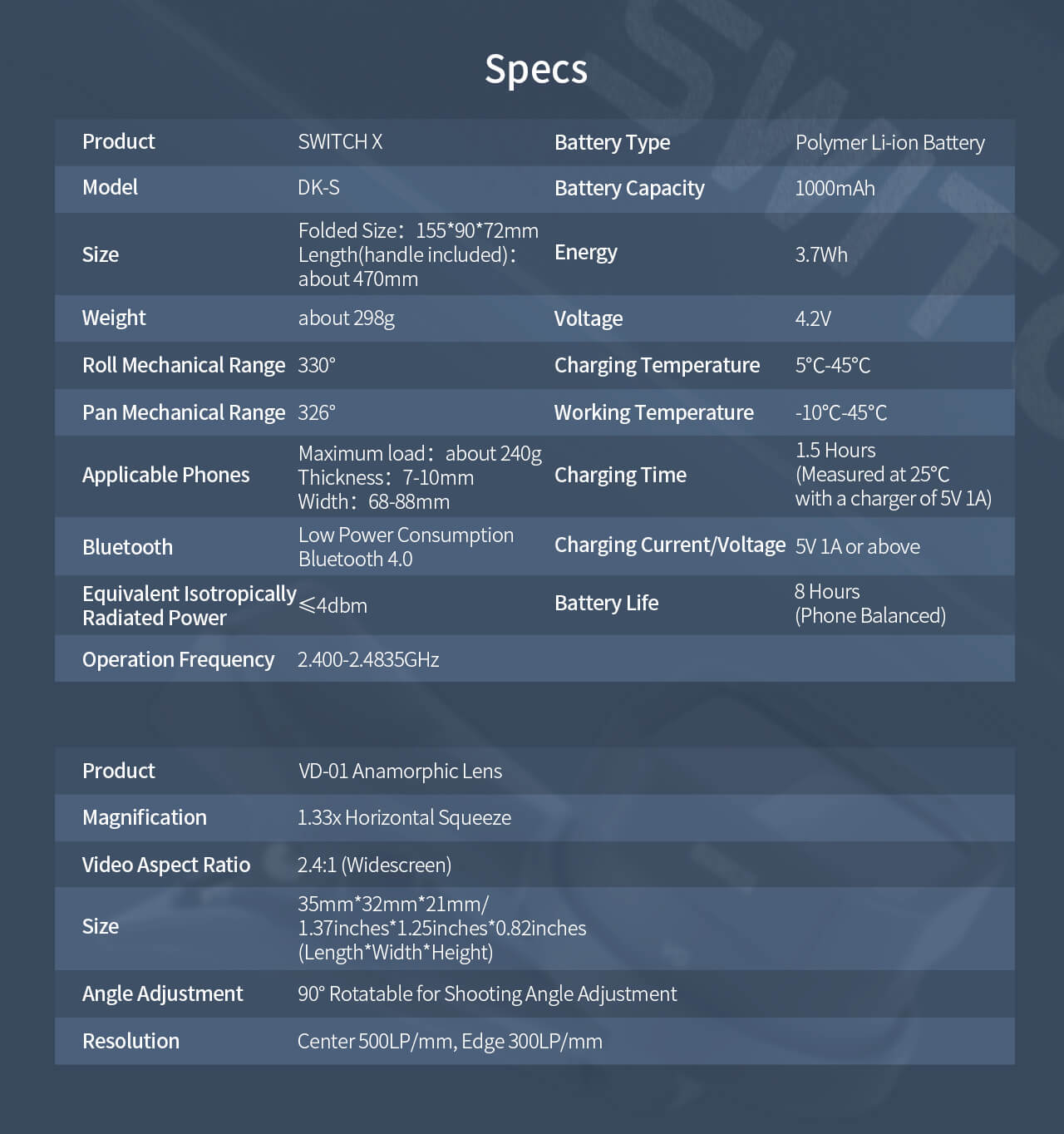SIRUI Switch X Smartphone Gimbal & Vlog Selfie Stick+VD-01 Anamorphic Lens - Smartphone Gimbal / Gimbal(Grey)+Lens is backordered and will ship as soon as it is back in stock.